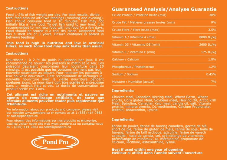 خوراک ماهی کوی برند Pond Pro، یک محصول کانادایی است که به طور تخصصی برای تغذیه ماهیهای کوی طراحی شده است. این محصول با فرمولاسیون منحصر به فرد خود، نیازهای تغذیهای این ماهیهای زینتی را به طور کامل برآورده میکند و به حفظ سلامت و شادابی آنها کمک میکند.