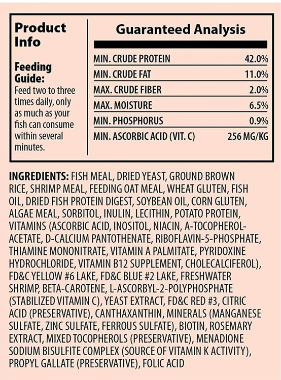 ترکیبات: اسپیرولینا ،نرم تنان و سخت دوستان ،پودر ماهی ،مخمر ، روغن گیاهی ،ویتامین سی ، D3 .